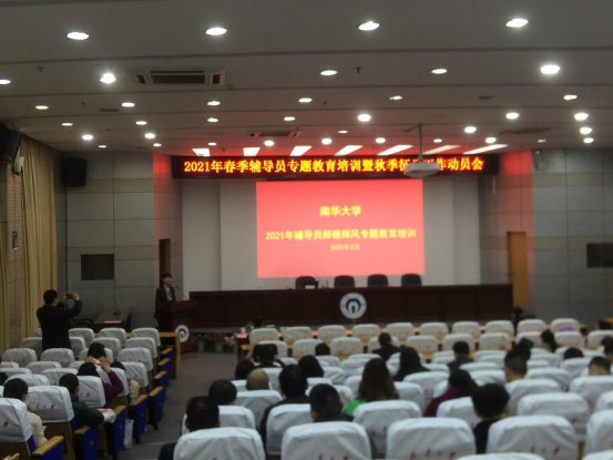 4月15日上午,我校在红湘校区图书馆学术报告厅组织召开辅导员师德师风教育培训会暨秋季征兵工作动员会,出席领导有:校党委委员、副校长何旭娟,校纪委副书记、监察处处长曾建新。学工部全体成员、各学院副书记、全体辅导员参加。
