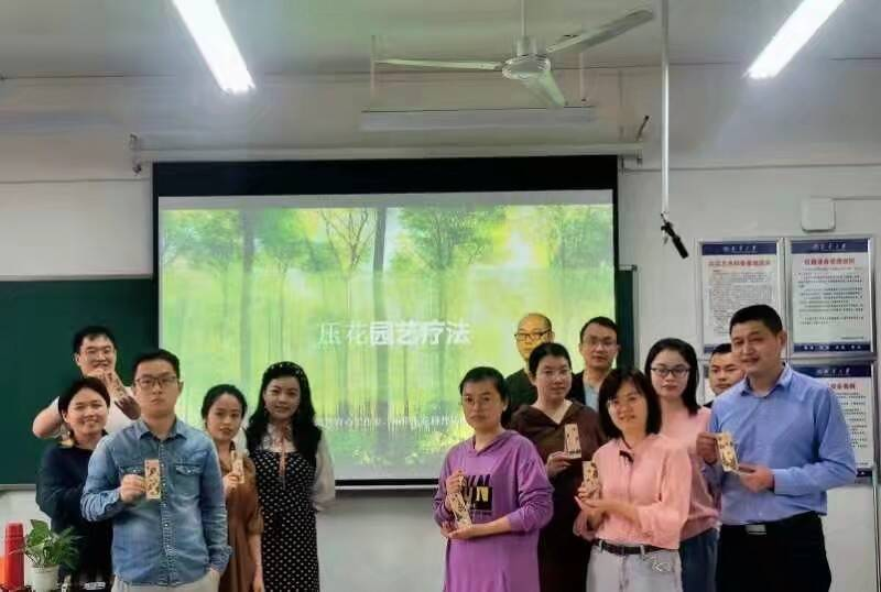 次活动的最后,各位老师手持自制的书签合影留念。本次活动向老师们宣传了园艺疗法,让老师们体验了使用园艺材料制作书签以纾解压力的过程。王美玲表示,园艺育心工作室在今后还会继续定期举办活动,丰富老师和同学们的校园生活。