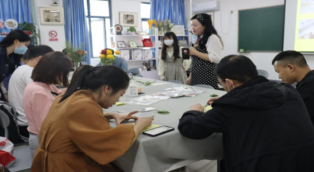 接下来园艺育心工作室成员李莹莹老师带领大家开展个活动的第二个部分——“植物书签”制作李老师简单的讲解后,各位老师各自动手运用植物材料设计、制作了属于自己的植物书签