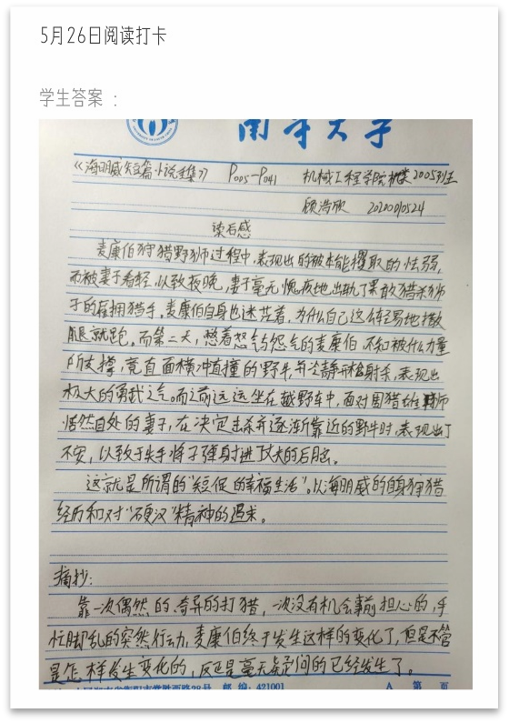 活动中,同学们积极参与,对于自己所阅读的经典作品进行思考和感悟,并将阅读过程之中对于自己有启发和感悟的好词好句进行摘抄和记录。