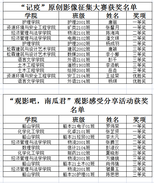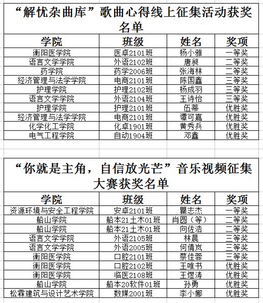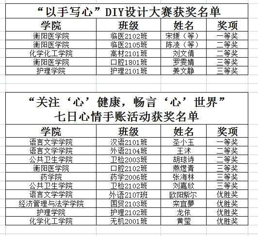 本次系列活动得到了同学们的积极响应,涌现出了许多制作精良的优秀作品,经过学工部心理中心、团委及各承办学院老师担任评委参照相应评选方法认真评选,现将各活动获奖名单公布如下: