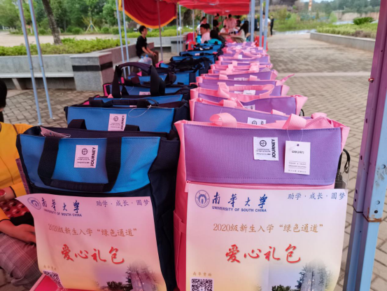 学校为建档立卡等家庭经济困难同学精心准备了贴心的“爱心大礼包”,大礼包根据学生性别分为深蓝和玫红两种颜色。礼包内有饭盒、雨伞、水杯、洗发水、沐浴露、牙膏、牙刷等生活用品和一张500元的爱心餐卡,学校还为部分特别困难的同学赠发全套床上用品、军训服等;同时,学生勤工助学·创业实践基地各勤工助学超市纷纷向新同学抛出橄榄枝,为家庭经济困难学生提供勤工助学岗位。学校多措并举、暖心资助,切实做到让同学们顺利入学、安心学习。