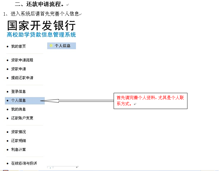 从2010年底正式启用开发银行基层金融业务系统,高校助学贷款的提前还款的申请流程修正如下: