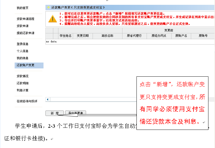 2、还款帐户变更(请使用支付宝帐户还款)