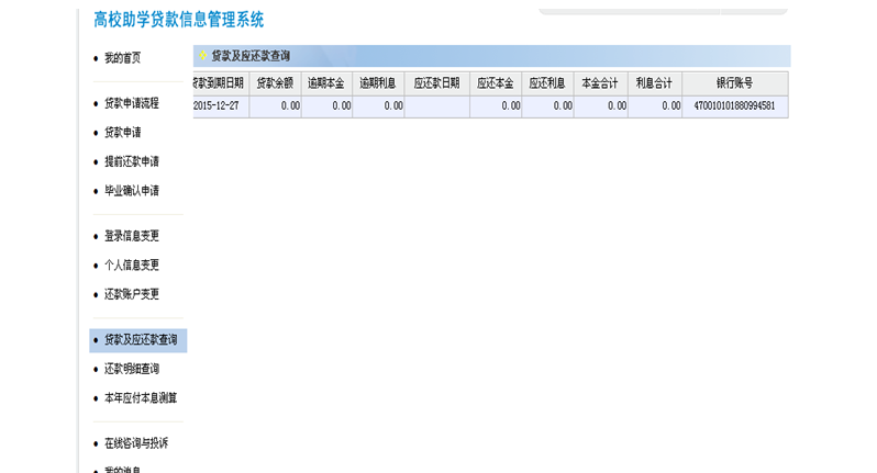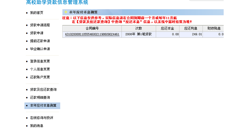 同学们可以在“国家开发银行助学贷款信息网”内查询今年应付利息。不熟悉贷款系统同学可按下列提示操作