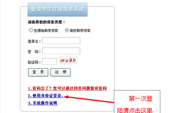 请选择“2、使用身份证登录”