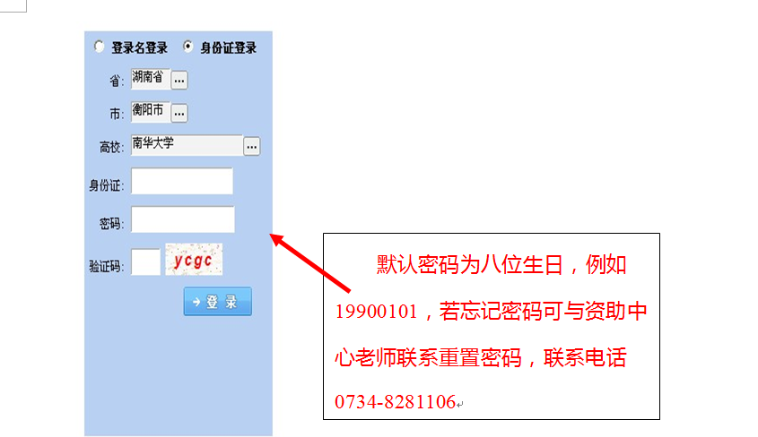 请选择学校信息“湖南省——衡阳市——365英国上市公司”,录入贷款人身份证号,