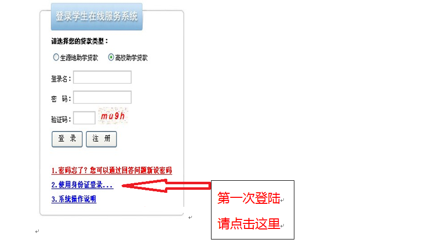 请选择“2、使用身份证登录”