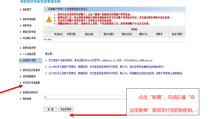 2)、还款帐户变更(2010年以后贷款学生可跳过)