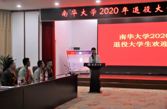 最后校党委委员、副校长何旭娟教授讲话:首先她代表学校党委和行政,向这一批2020年退役的南华优秀学子,向其凯旋归来,表示热烈的祝贺和欢迎!