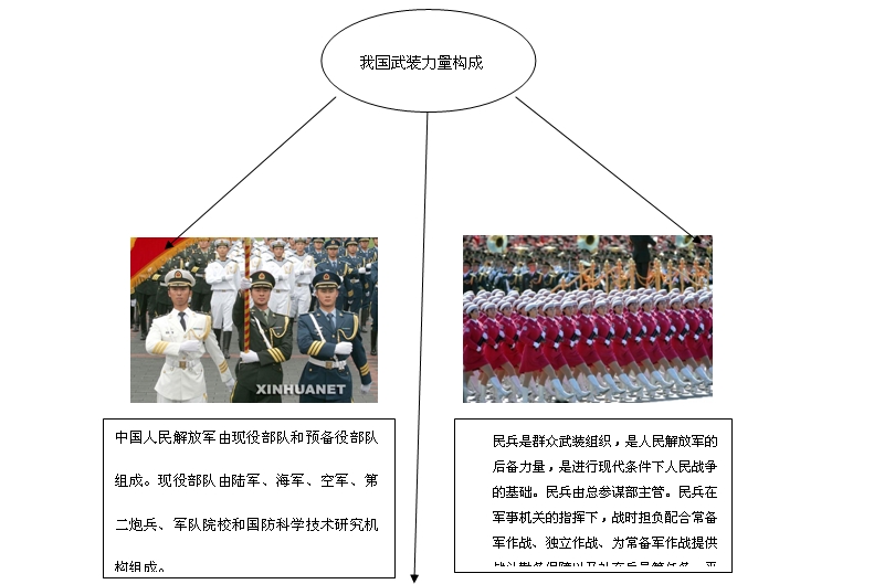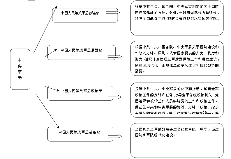 ——制止武装颠覆,维护社会稳定。中国宪法和法律禁止任何组织或个人组织、策划、实施武装叛乱或武装暴乱,颠覆国家政权,推翻社会主义制度。中国坚决反对一切形式的恐怖主义、分裂主义和极端主义。中国武装力量把依法维护社会秩序和社会稳定作为重要职责,严厉打击各种恐怖活动,打击敌对势力的渗透和破坏活动,打击危害社会稳定的各种犯罪活动,促进社会的安定团结。 ——加强国防建设,实现国防和军队现代化。中国军队坚持以毛泽东军事思想、邓小平新时期军队建设思想和"三个代表"重要思想为指导,全面贯彻落实科学发展观,坚定不移地走中国特色的精兵之路,积极推进各项改革,适应世界军事变革的趋势,努力完成机械化和信息化建设的双重历史任务,实现军队现代化的跨越式发展。