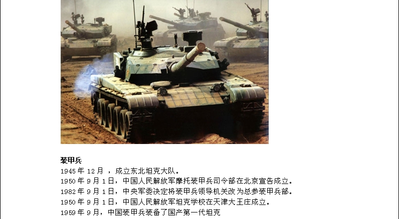 ZTZ-99式主战坦克是我军最新型主战坦克,具备优异的防弹外型,其炮塔和车体均采用复合装甲,抗弹能力成倍提高,是我军装甲师和机步师的主要突击力量,被称为中国的陆战王牌。