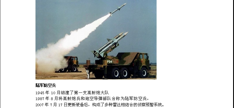 中国人民解放军陆军诞生于1927年,是我军主要军种,主要担负着陆地作战任务。现代陆军是一个多兵种、多系统和多层次有机结合的整体,具有强大的火力、突击力和高度的机动能力。既能独立作战,又能与其他军种联合作战。目前我国陆军没有设置独立的领导机关,领导机关职能由四总部代行,沈阳、北京、兰州、济南、南京、广州、成都七个军区直接领导所属陆军部队。