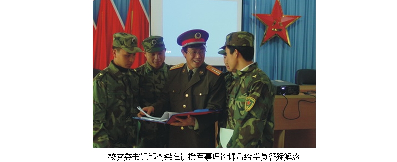 二是加强课程和教材建设。军事理论教学采取分班上小课形式,公共必修课,2学分,教学时数为32学时,考试成绩由教务处统一管理。学校还开设了军事法概论、人民军队导论、军人心理学、战争简史等国防教育选修课,同时将国防教育作为“形势与政策”课的重要内容,面向学生宣讲。我校还依据教学大纲编写了《大学军事教程》。
