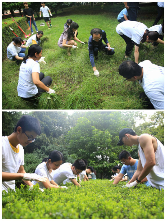 10月2日起,各学院师生积极投入到“共建美丽南华”中。校党委委员、副校长何旭娟,学工部、后勤服务中心、校园管理中心、团委等相关部门教师,电气工程学院、核科学技术学院、衡阳医学院、经济管理与法学学院的师生率先在张爱萍将军铜像区、王淦昌教授铜像区、桃蹊园、镜湖广场四个区域展开了美化校园行动。入秋的校园,丹桂飘香,微风和煦,大家或拔除杂草、或擦拭铜像、或拾掇垃圾,氛围热烈,学生们脸上既洋溢着快乐的笑容又流淌着劳动凝结成的汗水,看着美化后干净整洁的校园,学生纷纷表示很开心、很有成就感,也非常荣幸自己能够参与到美丽校园的建设中,贡献一份力量。