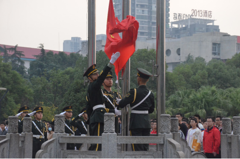7时整,国旗护卫队迈着铿锵的步伐阔步走来,将国旗护送至旗杆下准备升旗,伴随着嘹亮的义勇军进行曲响起,鲜艳的五星红旗冉冉升起,全体师生庄严肃立,行注目礼。升旗仪式结束后,学生代表核工1906班梁乐华同学从抗疫精神、“两弹一星”精神、核工业精神的角度进行了国旗下的演讲。核工1905班陈江宇同学从军旅生活、抗疫精神、当代学子的使命和担当等角度进行了国旗下的演讲。学生代表核工1806班李仕祺同学向学院全体同学提出了关于建设美丽文明校园的倡议:一是勤学笃行,砥砺成长;二是强化责任,勇于担当;三是爱国力行,积极向党;四是常态抗疫,刚健自强。