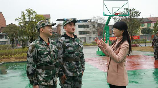 副校长何旭娟与役前训练的大学生亲切交流