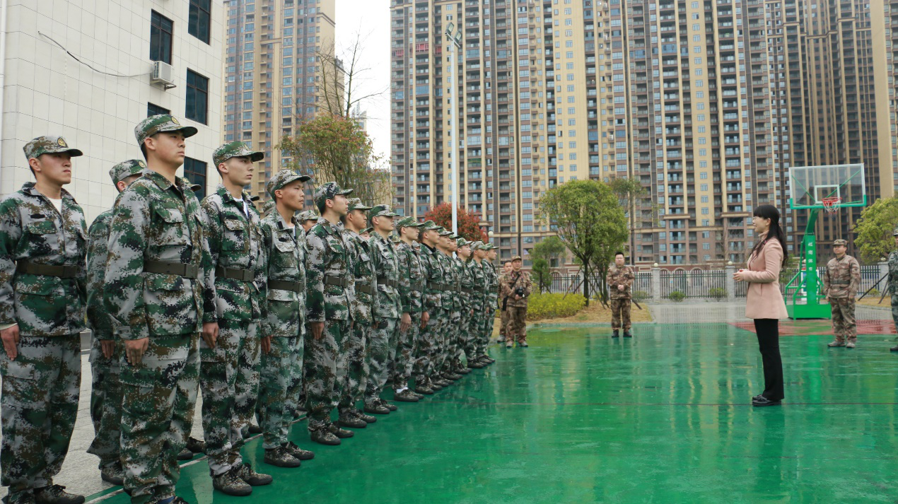 副校长何旭娟慰问役前训练的大学生并讲话