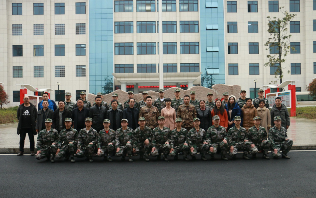 副校长何旭娟一行与蒸湘区武装部领导及同学们合影