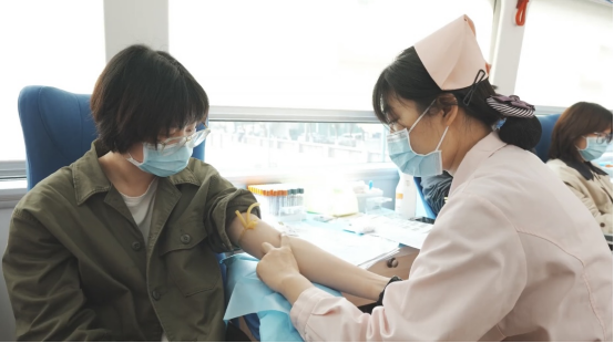 在献血车内,求是园区的同学、老师们纷纷挽起袖管、奉献爱心,大家毫不犹豫地献出自己的涓涓热血。