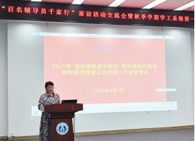 为进一步推进“百名辅导员千家行”活动,不断总结家访工作经验,提升工作成效,打造家校协同育人品牌,促进家校携手共助学生教育工作,2023年9月1日上午,校党委学生工作部于红湘校区图书馆学术报告厅召开“百名辅导员千家行”家访活动交流会暨秋季学期学工系统第一次全体会议。