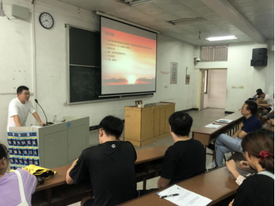 会议的第三阶段为领导致词,首先学院团委书记陈杰烜老师对新同学的到来表示热烈的欢迎,然后表示新研究生的到来为我院研究生党员注入了新鲜的血液,并希望同学们能够多多参加志愿活动,做一个独立有担当的南华人。