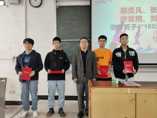 接着,由卢清华给获奖运动员进行颁奖,本次大运会男子跳高第一名徐嘉佑,女子5000米第三名巫欣怡,男子100米第八名郭奕凡,男子4*100米第八名郭奕凡、张满宁、廖章翔、刘康华依次上台领奖。