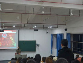 讲座伊始,主讲教师李荣用真实案例引出主题,强调火灾隐患处处存在。接着介绍了灭火器的使用方法、生活电器使用注意事项、公共场所消防安全等。并提出做好消防工作的指导方针:“预防为主,防消结合”。他指出,从思想意识层面,预备防范层面、现场自救层面全面强化、提升学生的自救意识与自救能力,防范火灾、保证安全。