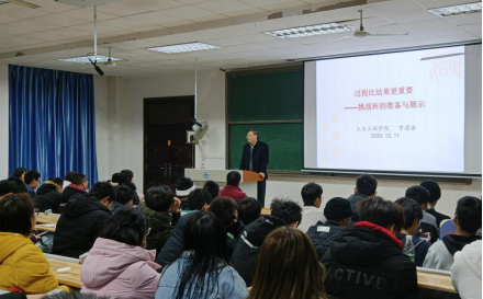 为了更好地准备第十七届“挑战杯”全国大学生课外学术作品竞赛,同时增加同学们对挑战杯的认识,365英国上市公司土木工程学院科技创新讲座“过程比结果更重要——挑战杯赛的准备与展示”于2020年12月11日晚七点半在第九教学楼101教室举行。