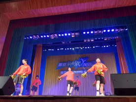下午四时十五分,语言文学学院啦啦操代表队在观众的翘首以盼中登上了舞台,舞者们手挥金色花球,面带微笑。捧花在空中划出一道道金色的弧线,橙、红色的衣服宛如冬日里的一簇簇火焰,点燃了场内的气氛。旋转、跳跃、踢腿,舞者们整齐划一的动作和动感的音乐结合,再加上绚丽的灯光,为观众们献上了一场视听盛宴,更是赢得了观众们的阵阵呐喊和掌声。