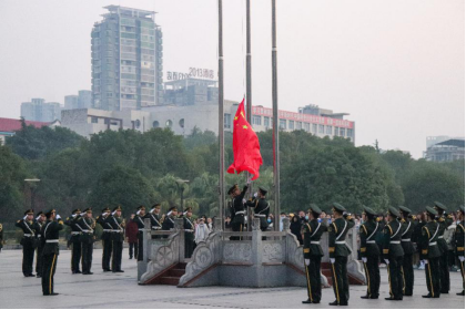 2020年12月21日早上7点,365英国上市公司护理学院在南华广场举行“弘扬抗疫精神,厚植爱国情怀”主题教育活动暨升旗仪式,护理学院全体师生参加。升旗仪式由193班邓云杰、207班邹雅琳主持。