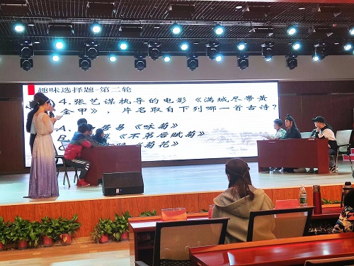 在语言文学学院副院长马汉卿精彩的开场致辞之后,比赛正式开始。经过激烈角逐、层层筛选出的二十四名学生随机分成六组进行团体赛比拼。比赛不仅是对诗词储备、文学素养的考察,也是对反应能力、团队精神的测试。“恰同学少年,风华正茂”迅雷不及掩耳之势的抢答,振奋人心的反超……选手们在台上精彩的表现赢得观众阵阵热烈的掌声;在诗词接龙环节,各团队分别有一次场外求助机会,通过这种形式进行良好互动。团体赛告一段落后有十分钟中场休息,“湘楚文化协会”带来国风舞蹈《寄明月》,以另一种形式为在场者带来文化的熏陶与感动。在接下来的个人比赛中,“飞花令”高手过决为观众带来一场诗词盛宴;选手讲解原创诗词后,由评委老师打分、观众进行现场投票构成的“七步成诗”环节令人领略到“美哉我少年中国,与天不老;壮哉我中国少年,与国无疆”的蓬勃朝气,也欣慰“以我之诗心,鉴照古人之诗心,虽隔千秋,欣如晤面”的文化传承。