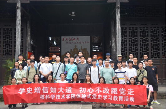 2021年4月24日,核科学技术学院各党支部教职工党员代表和学生党员代表一同前往夏明翰故居和湘南学联开展体验式党史学习教育活动,重温入党誓词、缅怀革命先烈、聆听红色故事、感受信仰力量。