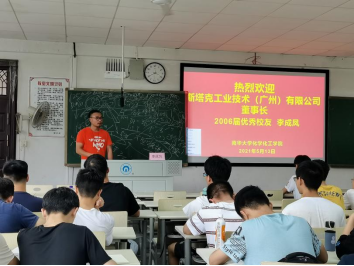 5月13日下午3点,化学化工学院在九教402室举行了“以科学研究为导向,实现专业与产业对接”的专题报告会。我院2006届优秀校友,斯塔克工业技术(广州)有限公司董事长李成凤应邀回母校主讲,化学化工学院党委副书记余晓秋主持,我院化学工程与工艺专业七十余名同学参加了本次座谈会。