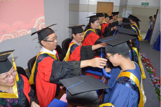 随后,由院长林英武宣读《关于2020——2021学年度第二学期学位授予的决定》,导师林英武、王宏青、余晓秋、刘慧君、赵玉宝、阳鹏飞、吴红枚、龚韬、陶玉强、刘婧靖、张也、伍智林12位导师上台为2021届毕业生进行拨穗,授予学位,并送上由学院为每位毕业生量身定制的,带有姓名、学号的精美优盘,珍藏最美好的记忆。典礼在唐帅、刘杨、孙旭东等领唱,全体毕业生合唱《凤凰花开的路口》歌声中圆满结束。