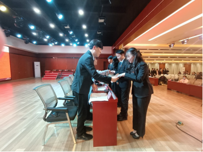 大会第九项,院学工室主任陈楠老师宣读任命文件并为新一届的学生干部颁发聘书。随后,第二十一届团委、学生会代表石峻伟同学宣读倡议书,石峻伟同学表示:“作为青年一代学子,我们要继续弘扬光荣传统,永远把伟大的建党精神继承下去,发杨光大。要实学实干,脚踏实地,在攀登知识高峰中追求卓越,在肩负时代重任时行胜于言,在真刀真枪的实干中成就一番事业。”最后,余晓秋副书记在闭幕词中寄语新一届的学生干部希望他们圆满完成自己的光荣使命,创造新的辉煌,开创更美好的新局面。大会在全体奏唱中国共青团团歌中圆满落幕。