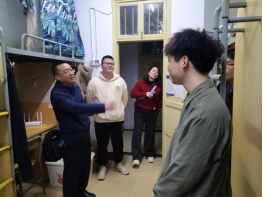 在安全检查过程中,卢清华专门与部分毕业生进行了交谈,了解学生考研、就业情况及个人近期打算,叮嘱学生注意宿舍安全,禁止使用违章电器,确保顺利毕业。其他辅导员也分别与各年级的学生进行了交流,鼓励他们好学习、好好相处,保障宿舍安全,注意宿舍卫生,并与宿舍同学们亲切留影。