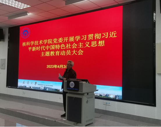 4月26日下午,核科学技术学院党委在核学楼核应急报告厅组织召开了开展学习贯彻习近平新时代中国特色社会主义思想主题教育动员大会,学院党政班子成员及师生党员代表参会。会议由院党委书记赵立宏主持。
