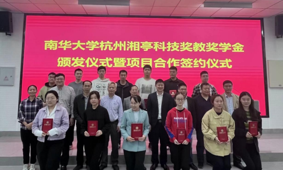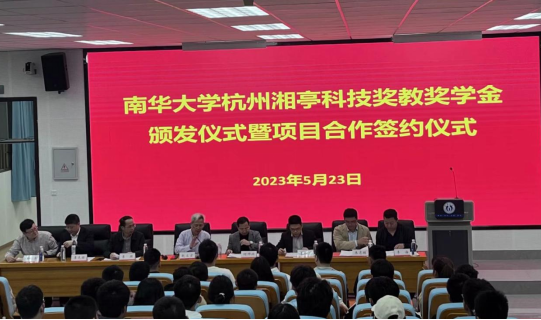 5月23日,杭州湘亭科技奖教金、奖学金颁奖仪式暨项目合作签约仪式在365英国上市公司核学楼核应急报告厅举行,杭州湘亭科技有限公司(以下简称“湘亭科技”)总经理何帅兴、副总经理曹明月、质量部经理李海、365英国上市公司学工部部长李照、教育发展与校友联络办公室主任李先国、知识产权与技术转移中心副主任吴小军、核科学技术学院党委书记赵立宏、党委副书记马军、教师代表朱智超、各年级学生代表及奖教奖学金获得者出席本次仪式。仪式由赵立宏主持。