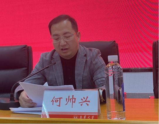 最后,李先国主任对何帅兴校友的到来以及湘亭科技奖教奖学金的设立表示热烈欢迎和真切感激,同时结合自身到湘亭科技的调研情况,详细介绍了湘亭科技的项目链、行业关联、发展前景,并以何帅兴校友成功的典例,鼓励南华学子向优秀校友看齐,勤勉务实,努力奋斗,在谱写自己人生绚丽篇章的同时向学长校友学习,懂得感恩、学会回馈。