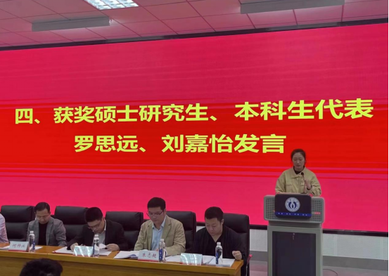 奖教金获奖代表何丽华老师发表了自己的获奖感言,她先后对学院、所在团队、学生集体以及湘亭科技的支持与帮助表达了诚挚谢意,同时表示自己会继续保持对教师工作的热情,更好的完成教书育人工作。硕士研究生获奖代表罗思远、本科生获奖代表刘嘉怡两位同学从各自所处的人生阶段谈及了湘亭科技奖学金对自己的意义,并且向湘亭科技、学校、学院表达了感激和敬意,他们表示会以此为鞭策,砥砺前行,努力充实和完善自我,积极投身核事业建设。