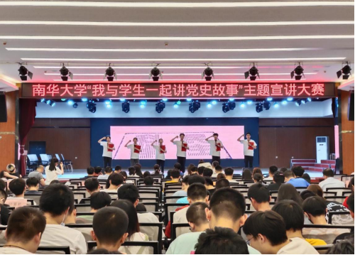 比赛开始,第一个上台宣讲的是机械工程学院代表,以《一个红枣也不能动》为题,讲述了一段中国共产党发生在井冈山革命根据地的故事,展现了中国共产党人高度的组织性和纪律性,并获得了广大老百姓的拥护和赞扬。紧接着,药学院、数理学院、核科学技术学院等16个学院的参赛师生围绕中国共产党的历史,向大家生动叙述了革命先烈、模范人物的英雄故事,如抗日英雄赵一曼、革命英烈陈延年和陈乔年、“杂交水稻之父”袁隆平、“两弹一星”元勋邓稼先、“政工元帅”罗荣桓等感人肺腑的光辉事迹。各参赛学院在师生共同宣讲的基础上,以情景剧、舞蹈、歌唱、对白、表演等不同形式,将党史故事中蕴含的红色精神、红色信仰展现得淋漓尽致。