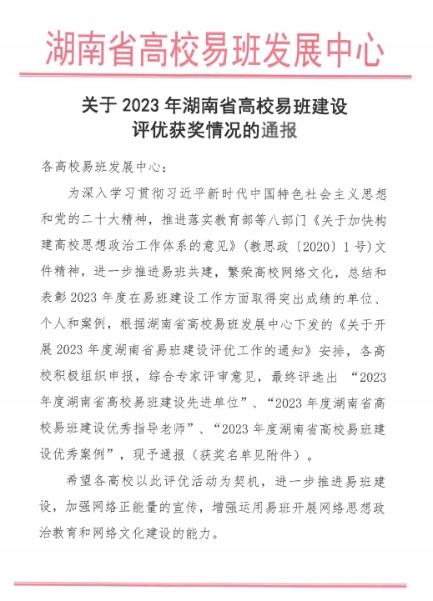 上下同欲者胜,同舟共济者赢。经过“易”家人上下一心,努力拼搏的一年奋斗,我校易班学生工作站获评“2023年度湖南省高校易班建设先进单位”。这是属于每一个“易”家人的荣誉,是对2023年一年努力的赞誉与新一年发展的期许。